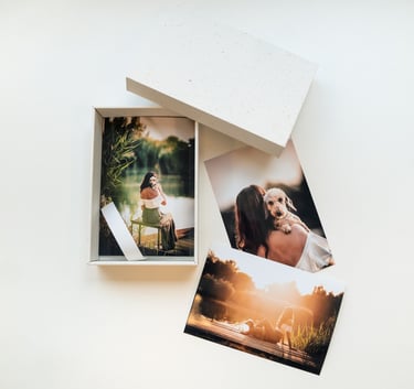 Magas felbontású digitális fájlok + 10x15cm méretű papírképek díszdobozban